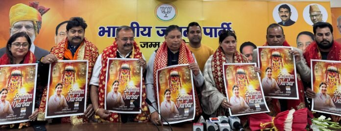 J&K BJP President & Rajya Sabha MP Sat Sharma (CA) accompanied by MLA Ch. Vikram Randhawa, today released a soulful devotional song “Sajaya Darbar” at the party headquarters, Trikuta Nagar, Jammu.