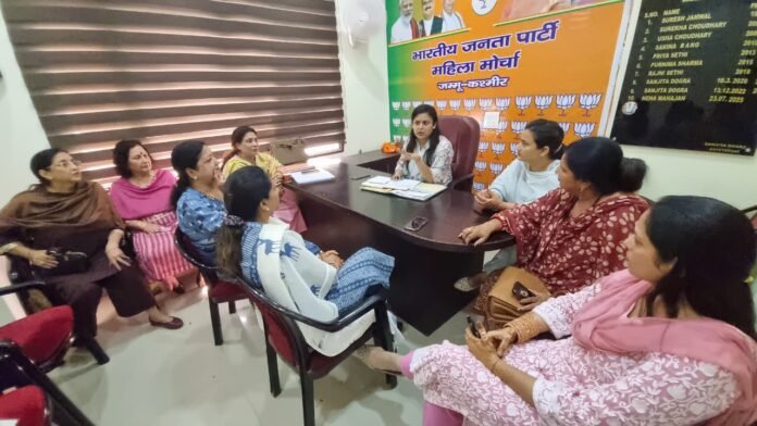 BJP Mahila Morcha Jammu & Kashmir UT today conducted an important meeting at the BJP Headquarters, Jammu, under the leadership of Adv. Neha Mahajan, President BJP Mahila Morcha JKUT, to discuss initiatives under Atmanirbhar Bharat Abhiyan.