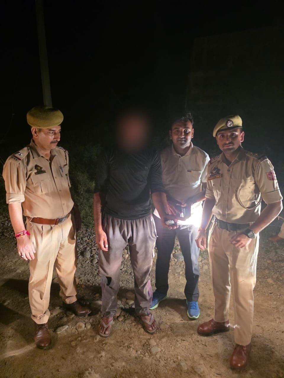 On 21/08/2025 a Police team of PS Hiranagar led by Insp. Ashish Sharma under the close supervision of *SP Ops Kathua Sh. Mukund Tibrewal IPS and SDPO Border Sh. Dheeraj Katoch* established a routine naka at Chakra Near Tarnah Bridge Hiranagar area to keep a check on suspicious movement and illegal activities.