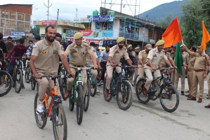 The event witnessed enthusiastic participation from students and youth, who pedalled with passion and determination despite challenging weather conditions. Police officers and jawans also participated in the event. The race was flagged off by Dy.SP Hqr’s Ganderbal Shri Owais Ahmad-JKPS and Dy.SP DAR Shri Nazir Ahmad who lauded the students and youth for their commitment to fitness and discipline.
