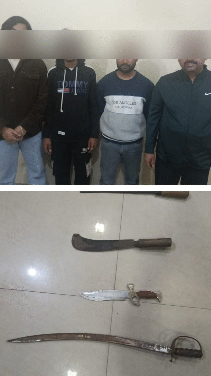 Acting on specific information, the police team swung into action and caught the accused persons red-handed, recovering sharp edged weapons from them. The arrested accused persons are wanted in connection with case FIR No. 148/2025 U/S 4/25 A.Act registered at Police Station Bakshi Nagar.