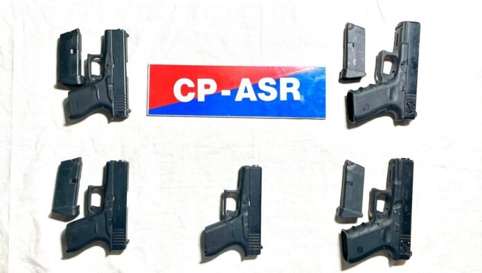 In a decisive action against cross-border arms smuggling, Commissioner of Police Amritsar arrests Amit Singh, r/o Guru Ki Wadali, Chheharta, and recovers 5 Glock pistols, 4 magazines, and a motorcycle.