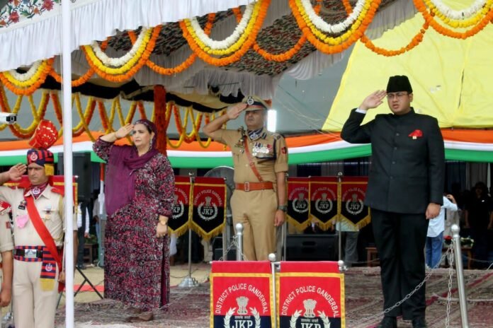 Addressing the gathering, *Mst. Nuzhat Ishfaq* extended heartfelt greetings to the people of Ganderbal on this historic occasion. She paid glowing tributes to the freedom fighters who sacrificed their lives for India’s independence, and remembered the martyrs of Police and CAPFs who laid down their lives in the line of duty. She also underscored the importance of women empowerment in building a stronger and more progressive nation.