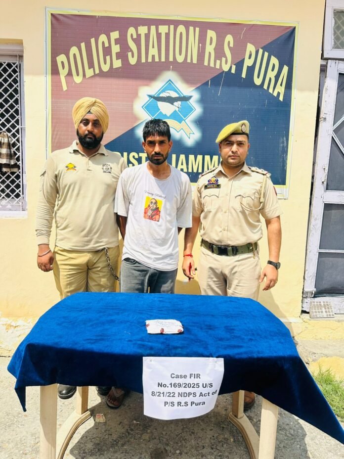 The operation was carried out on 10 August 2025 by a police team from Police Station R.S. Pura, led by PSI Affan Nazir and assisted by other officials under the supervision of the SHO Police Station R.S Pura,Inspector R. S.Parihar.