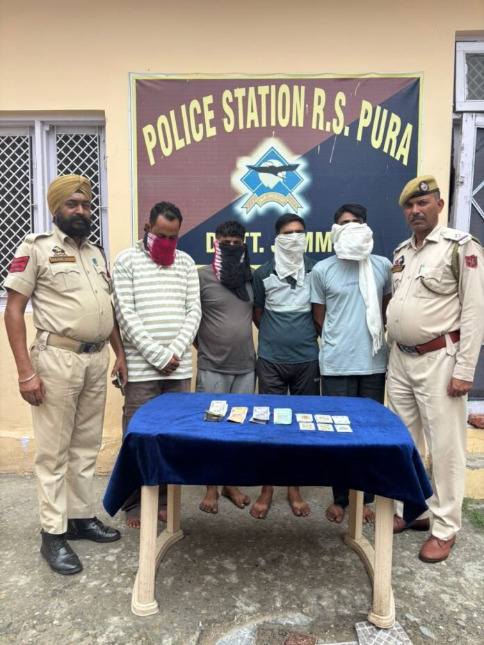 In a decisive action against illegal gambling, a Police team from Police Station R.S Pura apprehended four notorious gamblers during a raid at Gandhi Park, R.S Pura during last night . The accused were caught red-handed while engaging in gambling in an open space.