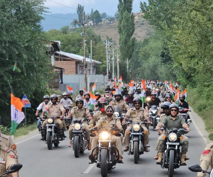 Moreover, In Baramulla, J&K Police organised Tiranga Bike Rally in Baramulla town. The rally was flagged off from DPL Baramulla and traversed through Carrippa Park, Azadgunj, Chakloo and Kralhar before culminating peacefully back at DPL Baramulla. The event was led by DIG North Kashmir Range, Shri Maqsood-ul-Zaman-IPS, DC Baramulla Shri Minga Sherpa-IAS and SSP Baramulla, Shri Gurinderpal Singh-IPS. It witnessed active participation of Addl. SP Baramulla, SP Ops Baramulla, DySP Hqrs Baramulla, DySP DAR DPL Baramulla, DySP Traffic Baramulla, SHO PS Baramulla, IC PP Old Town/Delina, all GOs and SHOs from other subdivisions of Baramulla, a large contingent of police personnel and enthusiastic youth from the district.