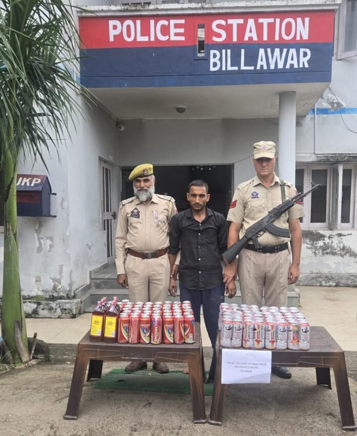 A Police Party of P/S Billawar led by *SHO Billawar Insp Zaheer Mushtaq under the supervision of SDPO Billawar Sh Neeraj Padyar* established a naka for checking/ Frisking of vehicles at Kohag, Billawar. One vehicle bearing Reg.No.Jk08E- 7839, coming from Mandli towards Kohag stopped for checking on suspicious ground, During checking , 08 Bottles of JK Special Whisky 750/750 ml each, 48 No.’ of Beer Cane (Kingfisher) 500 ml each and 48 no’s of Beer Cane ( Godfather) 500 ml each have been recovered from vehicle and seized on spot . Driver of the vehicle namely Ajeet Singh S/O Mian Singh R/o Dhanuparole, Tehsil Billawar Distt Kathua has been arrested. In this regard a case FIR No. 112/2025 U/S 48(a)/Excise Act stands registered at this PS Billawar . further investigation is going on.