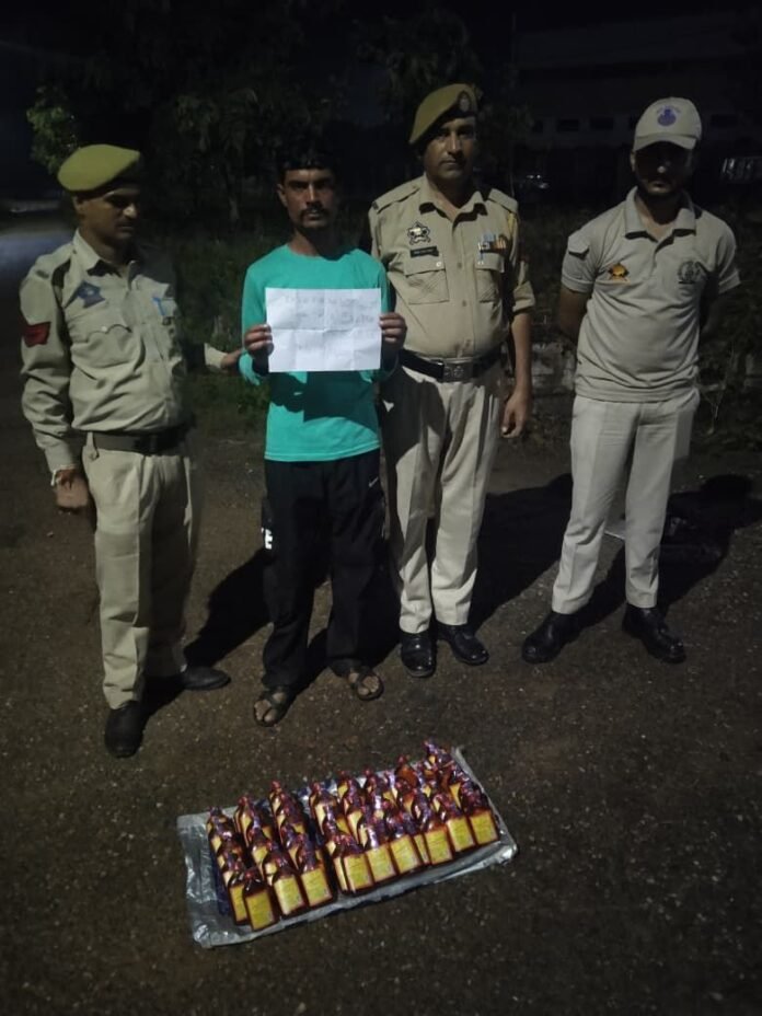 Acting on a tip off regarding the sale of illicit liquor,a police party led by I/C Out Post Ghatti PSI Rajat Kotwal under the guidance of DySP Hqrs Kathua Sh. Ravinder Singh and SHO PS Kathua Insp. Sandeep Chib swung into action and apprehended one person moving suspiciously by foot while carrying a plastic bag(toda) on Ghatti Nanan road at Kalana.Upon being questioned, he disclosed his identity as Rahul Sharma S/o Joginder Lal R/o Pandrar, Tehsil and District Kathua. Upon checking his bag 56 quarters (180/180 ML each) of JK Special Whisky have been recovered from his possession.