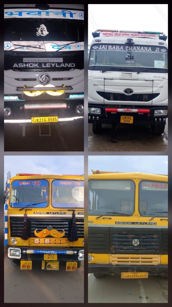 Samba, July 5, 2025: Continuing its drive against illegal mining, Samba Police has seized four dumpers in the jurisdiction of Police Stations Ghagwal and Samba which were being used for illegal transportation/mining of the construction material.