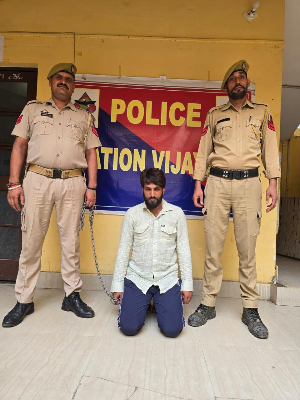 A Police team headed by SHO Police Station Vijaypur under the supervision of SDPO Vijaypur and under the overall supervision of SSP Samba after sustained efforts & well-coordinated operation has succeeded in apprehending a notorious criminal namely Mohd Younus S/o Noor Alam R/o Rakh Barotian tehsil Vijaypur district Samba who was wanted in different FIRs of PS Vijaypur including