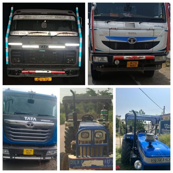 Samba, June 16, 2025: Continuing its drive against illegal mining, Samba Police has seized five vehicles including three dumpers across the district which were being used for illegal transportation/mining of the construction material.