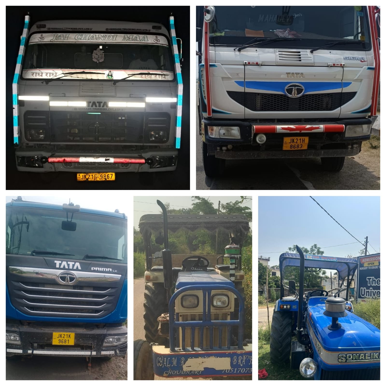 Police teams headed by SHO PS Ghagwal, SHO PS Purmandal, Incharge PPs Supwal & Rakh Amb Talli of PS Samba and Incharge PP Utterbehni of PS Purmandal while performing patrolling duty in the jurisdictional area, have seized three dumpers bearing registration Nos. JK21H-8683, JK21E-9867, JK21K-9681 and two tractor trolleys without Nos. which were being used for illegal transportation/mining of the construction material in the area.