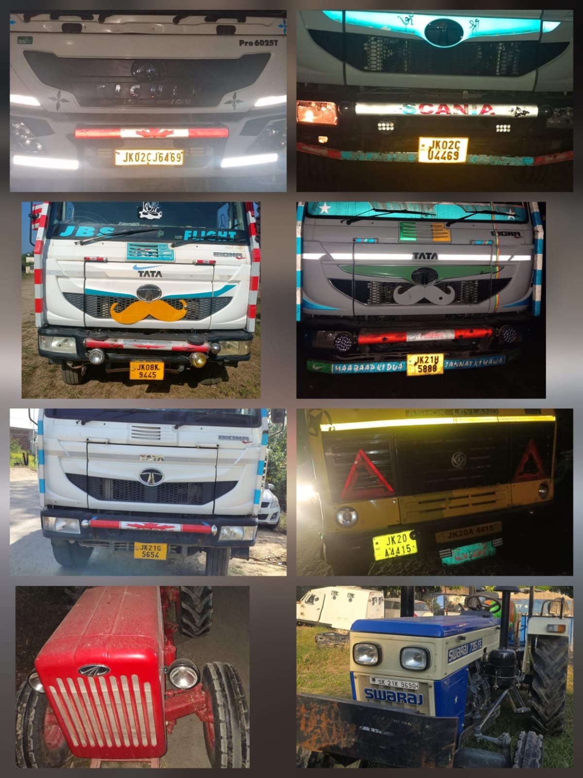 Police teams headed by SHO PS Samba, SHO PS Ghagwal, SHO PS Purmandal, Incharges Police Posts Supwal & Rakh Amb Talli of PS Samba, Incharge Police Post Rajpura of PS Ghagwal while performing patrolling duty in their jurisdictional areas, have seized six dumpers bearing registration Nos. JK20A-4415, JK21G-5654, JK21H-5888, JK08K-9445, JK02CU-4469, JK02CJ-6469, a tractor trolley bearing registration No. JK21K-9690 and a tractor trolley without No. which were being used for illegal transportation/mining of the construction material in the area.